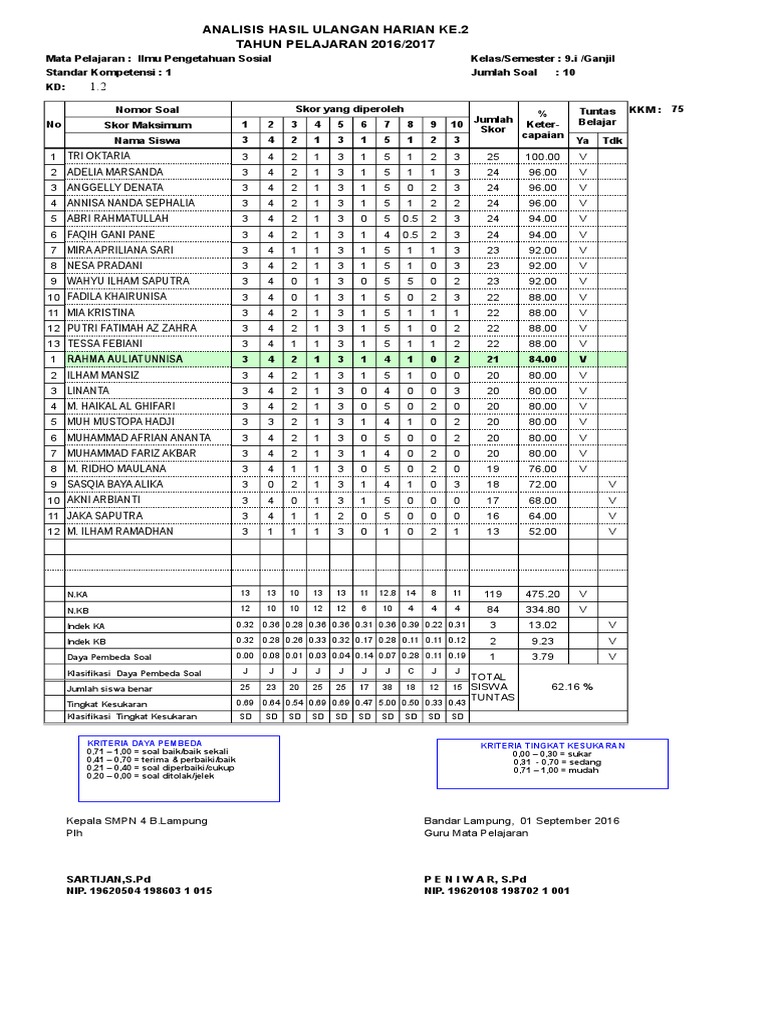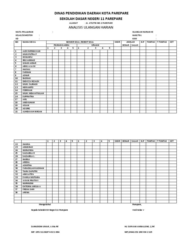 Analisis Soal Ulangan Harian Sd Revisi Sekolah