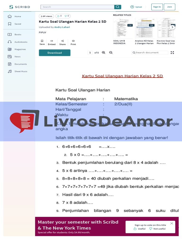 Download Soal Ulangan Matematika Kelas 5 Sd Mi Semester 2. Namun untuk Soal IPA Kelas 9 Bab 2 ini belum dilengkapi beserta kunci jawaban. Soal tema 1 kelas 5 pena pengajar klik di sini.